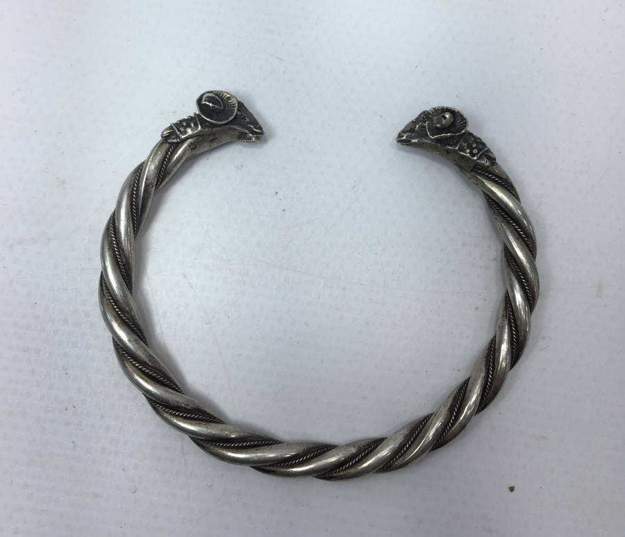 1930 - 40 LARDAN ÖZEL YAPIM İKİ TARAFI KOÇ BAŞLI 900 AYAR GÜMÜŞTEN MAMUL VE TAMAMI EL YAPIMI BİLEKLİK - PAZUBEND