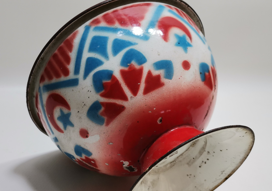 OSMANLI DÖNEMİ ÜZERİ AY YILDIZLI YÜKSEK KONDİSYONDA EMAYE TABAK